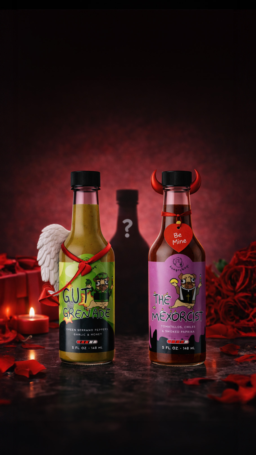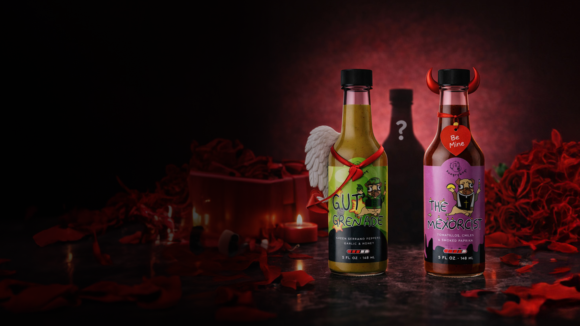 Five sauces. Zero boredom. Maximum chaos: Sweet Sting, The Butt Bubbler, Gut Grenade, The Mexorcist, and Taste Bud Trauma.